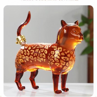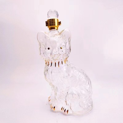 河间华企生产十二生肖酒瓶小猫造型玻璃工艺酒瓶