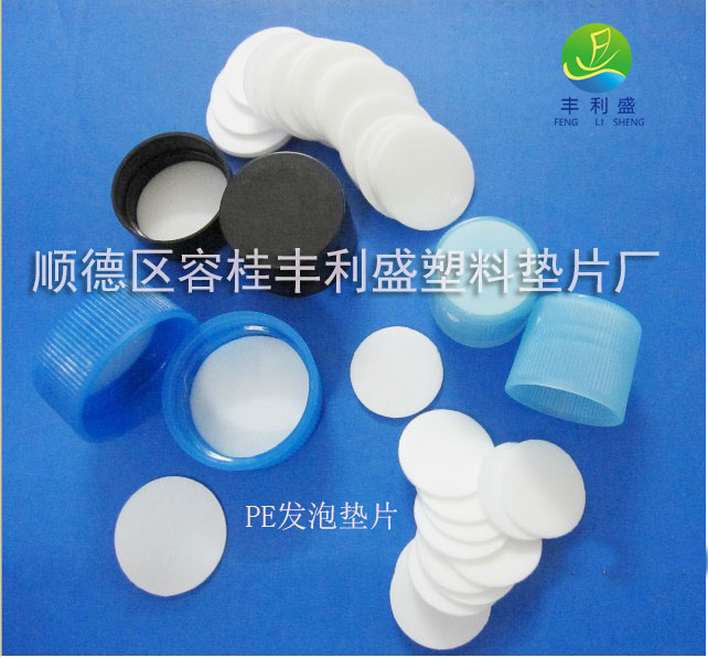 PE垫片:冲压成 PE发泡垫片主要用于酒类、化妆品、医药品瓶盖用高级PE衬垫。片材由PE材料构成,成品为雪白色,可以进行双面覆膜.