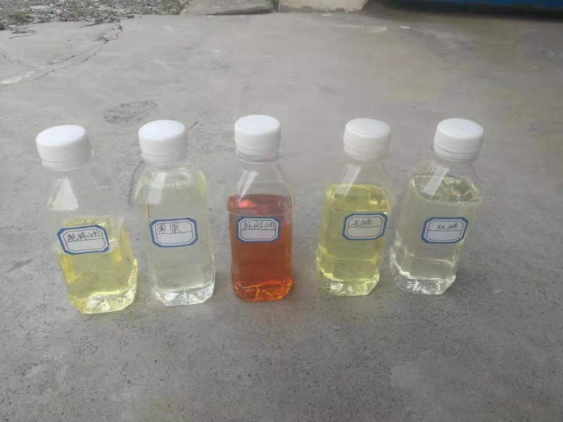 燃料油提炼柴油技术第六代免酸洗新工艺可以处理以下柴油料子:塔底油、180黑柴、大泵油、黑柴油、催柴、减一、常柴、轻质油、塔顶油、红油、涤纶布油、白油、凝析油、塑料油、轮胎油等各种柴油料子。工艺流程如下:先将油品打入脱胶罐中(夏季常温不加热,冬季需要40°左右)进行脱胶(不用硫酸)、然后加入脱色除味剂搅拌10分钟后经过滤机就能使油品的颜色转化为接近水白色或者水白色,透明发亮,味道和国标柴油一样且不会灰色,生产周期短(1小时左右)、出油率96%以上、在生产过程中不冒烟、无气味、无异味,无废水,安全环保。
