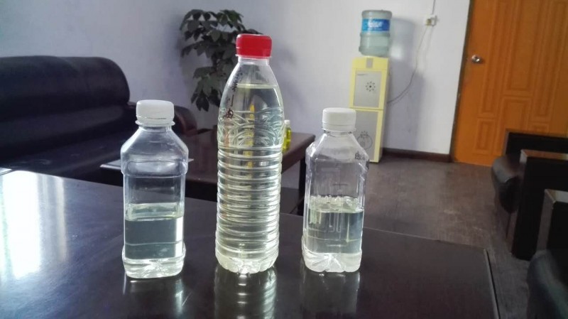废油炼油技术:先将塔底油、180黑柴、大泵油、黑柴油、催柴、减一、常柴、轻质油、塔顶油、红油、涤纶布油、白油、凝析油、塑料油、轮胎油等各种柴油料子打入脱胶罐中(夏季常温不加热,冬季需要40°左右)进行脱胶(不用硫酸)、然后加入脱色除味剂搅拌10分钟后经过滤机就能使油品的颜色转化为接近水白色或者水白色,透明发亮,味道和国标柴油一样且不会灰色,生产周期短(1小时左右)、出油率96%以上、在生产过程中不冒烟、无气味、无异味,无废水,安全环保。
